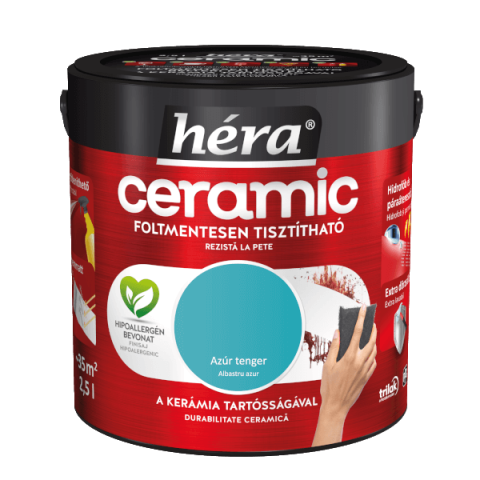 Héra Ceramic foltmentesen tisztítható beltéri falfesték a kerámia tartósságával. Hipoallergén bevonat. Fertőtleníthető. Selyemmatt. Hidrofób és páraáteresztő. Extra dörzsálló