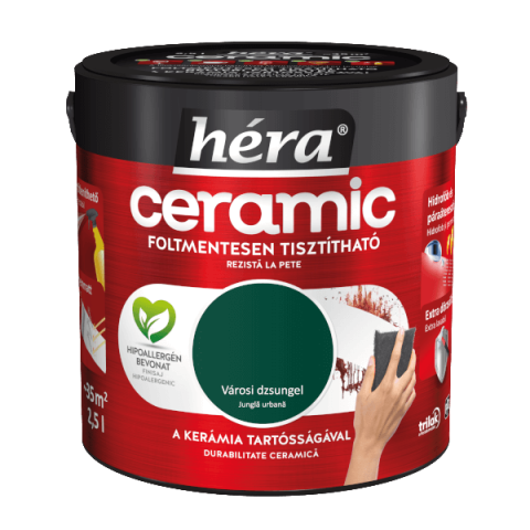 Héra Ceramic foltmentesen tisztítható beltéri falfesték a kerámia tartósságával. Hipoallergén bevonat. Fertőtleníthető. Selyemmatt. Hidrofób és páraáteresztő. Extra dörzsálló