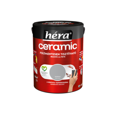 A Héra Ceramic speciális mikrokerámia-gyöngy tartalmának köszönhetően a legellenállóbb Héra beltéri falfesték. A kerámia technológia kimagasló mosás- és dörzsállóságot biztosít a felületnek, így téve azt foltmentesen tisztíthatóvá és fertőtleníthetővé. A Héra Ceramic falfesték hidrofób alkotórészei révén vízlepergető bevonatot képez, miközben innovatív kötőanyag szerkezete kiváló páraáteresztő tulajdonságot biztosít. A hipoallergén, selyemm