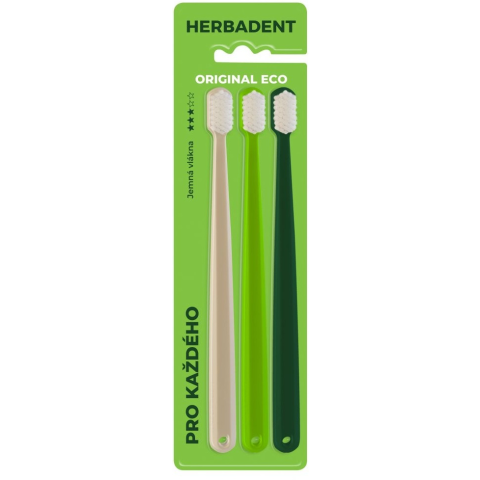 Fogkefe - 3 kefe, fekete, zöld és bézs kivitel Ve spolupráci s českými stomatology a dentálními hygienistkami jsme vyvinuli nové zubní kartáčky HERBADENT ORIGINAL, které splňují nároky moderní zubní péče. Kartáček s jemnými vlákny je vyroben z ECO
