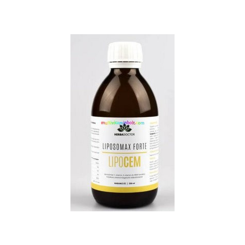 Liposomax Forte LipoCEM C-1000, C-vitaminm MSM, Evitamin, L-arginin - Liposzómális folyékony étrend-kiegészítő 250 ml - HerbaDoctor Egyetlen üveg LipoCem 50.000 mg liposzómás C-vitamint-, ezenkívül Lenmag olajat, MSM-et, L-arginint és E-vitamint tart