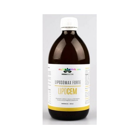 Liposomax Forte LipoCEM C-1000, C-vitaminm MSM, Evitamin, L-arginin - Liposzómális folyékony étrend-kiegészítő 500 ml - HerbaDoctor Egyetlen üveg LipoCem 50.000 mg liposzómás C-vitamint-, ezenkívül Lenmag olajat, MSM-et, L-arginint és E-vitamint tart