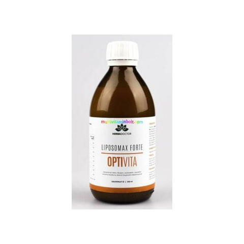 Liposomax Forte Optivita 300 ml liposzómás folyékony étrendkiegészítő - HerbaDoctor Liposzómás Lutein, Likopen, Asztaxantin, Zeaxantin tartalmú folyékony étrend-kiegészítő, grapefruit ízű. A Liposomax Forte Optivita a szemvédő vitaminok és az antioxidá