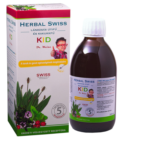 Herbal Swiss kid szirup 300 ml Legkomplexebb összetételű köptető szirup gyermekeknek. Béta-glükán tartalma immunerősítő hatású. Lándzsás útifű, kakukkfű, csipkebogyó, mályva, béta-glükán, bazsalikom összetevők. 4 éves kortól adható. Védőréteget képez