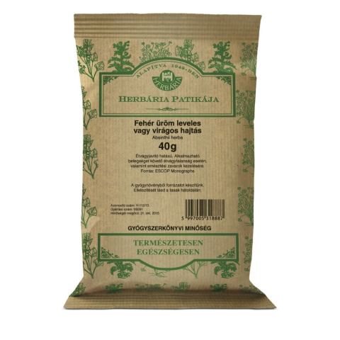 Fehér ürömfű (Absinthii herba) Étvágygerjesztő, epehajtó hatású. Emésztési zavarok, gyomorhurut esetén fokozza a gyomornedv elválasztást. 1 teáskanál (1-1,5 g) drogból 1,5 dl vízzel forrázatot készítünk, 10 percig állni hagyjuk, majd leszűrjük. Napi adag