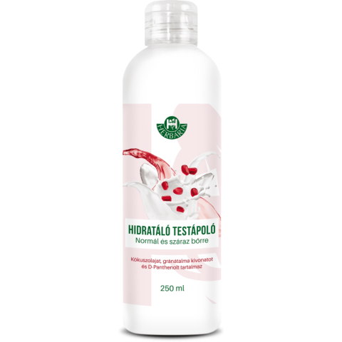 Herbária Hidratáló testápoló normál és száraz bőrre. Kókuszolajat, D-Panthenolt, glicerint és gránátalma kivonatot tartalmazó, könnyen beszívódó, hidratáló készítmény, mely összetevői révén gyengéd ápolást biztosít. A bőrt rugalmassá és bársonyosan pu