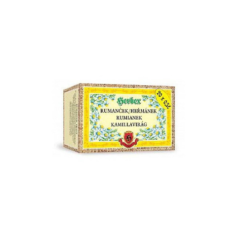 Herbex kamillavirág tea 20x2,5g 50 g Gyulladáscsökkentő, görcsoldó, szélhajtó, gyomorerősítő, fertőtlenítő. Jó szemborogatásnak, toroköblítőnek, fogínyerősítőnek. A kamillavirágot porrá morzsolva a viszkető és nedvedző ekcéma kezelésére is használhatj