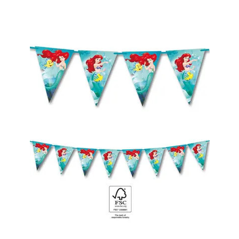 Disney Princess, Disney Hercegnők, Ariel zászlófüzér 9 zászló Mérete: 2,3 m FSC (Forest Stewardship Council)