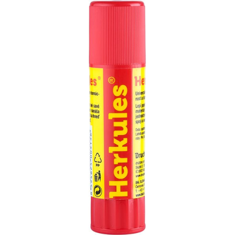 Ragasztó stift - ragasztópálca papírhoz, fához, parafához, bőrhöz, kartonhoz, textilhez, polisztirolhoz, alumíniumfóliához és poliuretánhoz, csúszó mechanizmussal, kupakkal, súly 8 g The HERKULES adhesive stick excels in its versatile use, thanks to which it is a suitable helper for the home, school and office. Reliably sticks paper, wood, cork, skin, cardboard, textile,