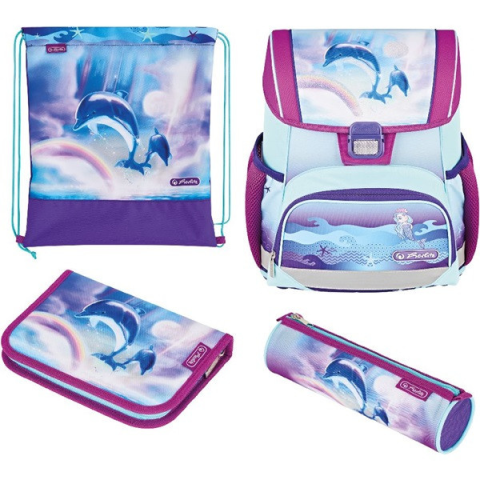 Herlitz Loop Plus Ocean in Heaven Iskolatáska szett - Varázslatos delfinekkel 🐬 Ez a 4 részes Herlitz Loop Plus iskolatáska szett tökéletes választás az elsősöknek! Könnyű, ergonomikus kialakítású, és minden szükséges kiegészítőt tartalmaz, hogy a su...