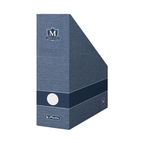 A4-es méretű iratok tárolásához készült Montana álló irattartó karton, 11 cm-es gerincvastagsággal, összehajtható, kék színben.