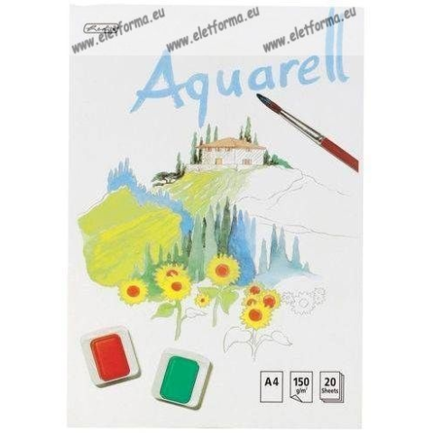Akvarell rajzblokk, kis és nagy művészeknek ajánljuk. Termékjellemzők: - Méret: A4. - Papírszín: fehér. - Lapok száma: 20 ív. - Papírminőség: 150g/m2.