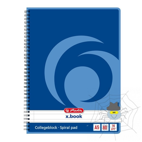 A5-ös méretű 80 lapos vonalas spirálfüzet, 70g/m2-es famentes belívvel, lyukasztott, perforált lapokkal, ikerspirállal, lekerekített sarkokkal.