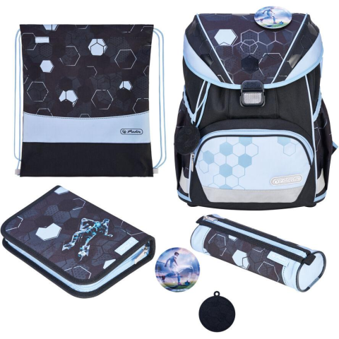 1 kép Herlitz UltraLight XL Plus Cyber Soccer Iskola táska szett - Fekete / Kék mintás (50048946)