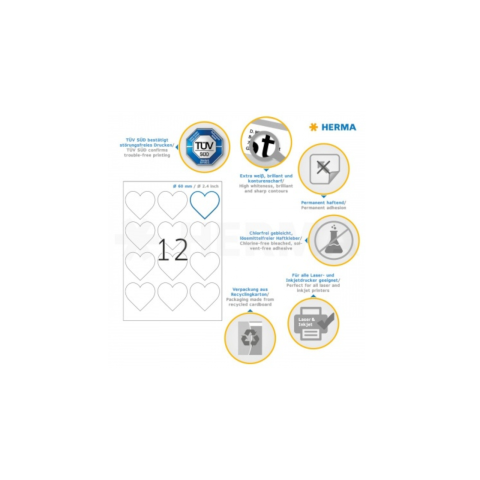 Herma GmbH Herma etikett A4, 60mm (12) szív alakú etikett 1 kép