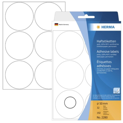 HERMA Vielzwecketiketten weiß 50 mm rund Papier 192 St. (2280) etikett árgrafikon