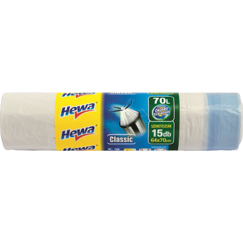 Teljes Hewa HEWA Önzáró szalagos szemeteszsák 70L 64*70cm - 15db/tek (Karton - 30 tek) termékleírás