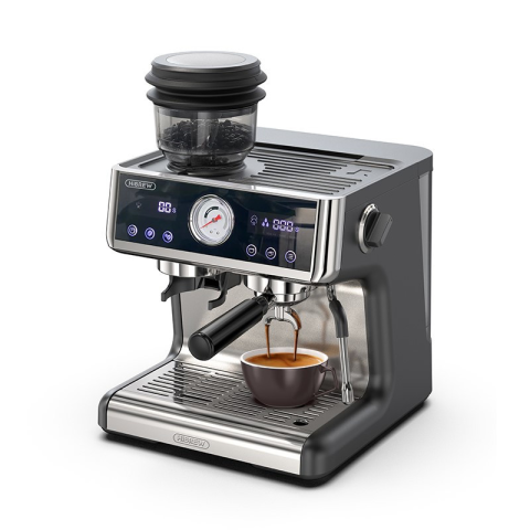 Főbb tulajdonságok: Nagy mérete miatt csomagautomatába nem tudjuk küldeni! 58 mm acél portafilter, szimpla, dupla kávészűrővel és extra nyomásnövelő (dupla aljú) szűrővel csak a hibrew.hu-n Digitális kijelző 30 fokozatban állítható daráló 48 mm-es kúpo
