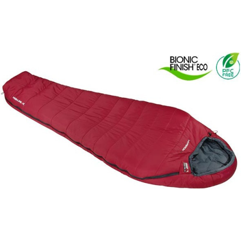 Extra széles (82 cm a vállnál), de múmia formájú három évszakos hálózsák Hőtartományok: komfort: +1 °C, limit: -5 °C, extrém: -22 °C. Előnyei Hőtartományhoz képest elfogadható súly. Kis csomagméret. Múmia forma. Duraloft műpehely töltet. Összehúzható kapucni. Két utas cipzár. Hőgallér. Belső tárolózseb. Kompressziós tok. További tulajdonságok Alak: múmia Belső anyag: 255T Rip Stop Nylon Csomagolt méret: 38 x 24 cm Hőtartomán
