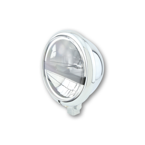 HIGHSIDER 5 3/4 hüvelykes LED fényszóró BATES STÍLUSÚ TÍPUS 5, E-jóváhagyott.Stílusos LED fényszóró fekete vagy króm fémburkolattal BATES STÍLUSÚ designban. A kerek, krómozott reflektor fekete diaframmal és átlátszó üveggel rendelkezik magas fényszóróval, alacsony fényszóróval és parkolófény funkcióval.A felső felében az alacsony fényszóró világít, és amikor bekapcsolják a magas fényszórót, mindkét fényszóró fényesen világít.A tesztelt fénysz
