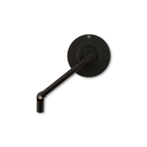 HIGHSIDER CONERO tükör, E-jóváhagyott, 2 változatban.– Fekete eloxált változat ezüst díszítéssel –Elegáns CNC megmunkált univerzális tükör kerek eloxált alumínium fejjel fekete vagy matt fekete színben. A fogantyún lévő második ízületnek köszönhetően tová