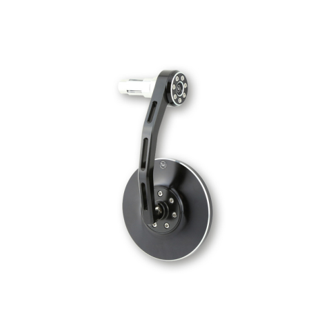 HIGHSIDER Conero bar end tükör, E-jóváhagyottCNC-forgácsolt kormányvégi tükör kerek fejjel, fekete anodizált alumíniumból készült. A csiszolt leletekkel kombinálva ez a modell nemes, stílusos design-t képvisel. Alkalmas olyan kormányokhoz, melyek belső át