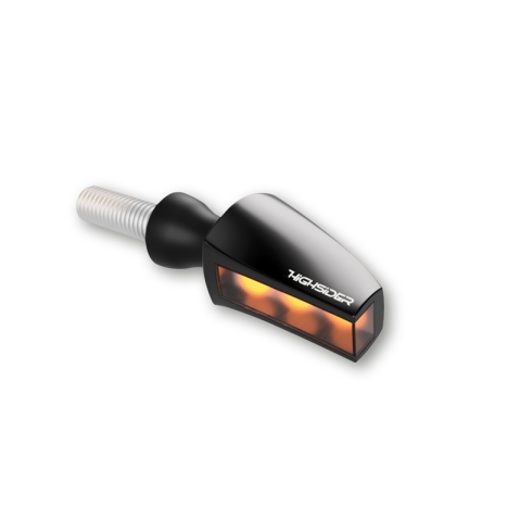 HIGHSIDER Flight LED irányjelzőA magas minőségű alumínium házzal rendelkező irányjelző rendkívüli designjával győz meg. Az átlátszó üveg a CNC-faragott házzal egy síkot alkot, amely első nézetből szögletes és kompakt benyomást kelt.A hátlapon viszont puha görbék dominálnak, hangsúlyozva a FLIGHT sportos jellegét. A rugalmas gumi fogantyú tökéletesen illeszkedik a fekete házba. A modern LED-ek SMD kivitelezése kiváló fényerőt biztosítanak, és valódi fig