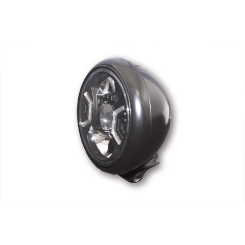 HIGHSIDER HD-Style Type 2 Fényszóró LED 7"" - alsó rögzítésStílusos-innovatív erő LED-es fényszóró purista designnal, parkolófény funkcióval és kerek, átlátszó üveggel. Az ovális, szatén-fekete vagy króm fémből készült ház fekete vagy krómozott aszimmetrikus – csak jobb oldali forgalomra – betéttel rendelkezik, E-jelzéssel ellátott.Méretek:Ház átmérője: 220 mmFényszóró betét átmérője: 178 mmMélység: 155 mmA rögzítő lyukak távolsága (közép