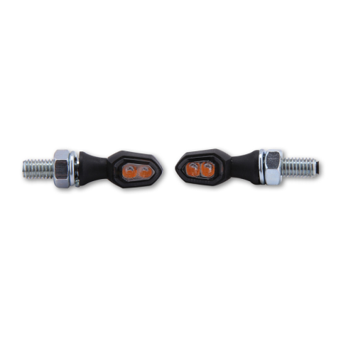 HIGHSIDER smart LED irányjelző CRUMB Szuper kicsi és diszkrét LED irányjelző fekete műanyag házban, enyhén színezett üveggel. Az erőteljes LED technológia különösen fényes és figyelemfelkeltő irányjelzőt biztosít motorkerékpárján. Elöl és hátul is felszerelhető, E-jelöléssel ellátva. Méretek: Szélesség A: 16 mm Szélesség B: 24,5 mm Magasság C: 11 mm Mélység D: 10,5 mm Menetes csavar: M6 Gumifogantyú: