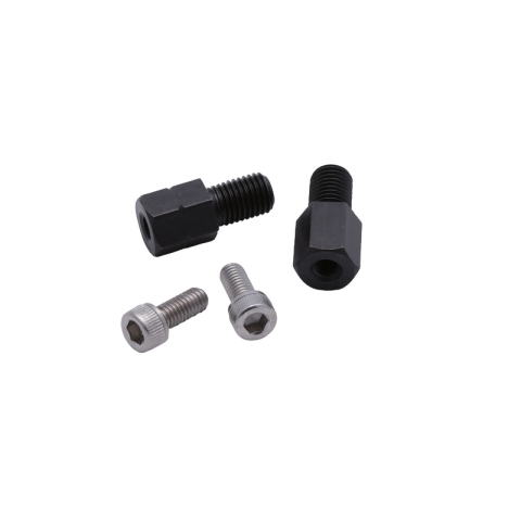 HIGHSIDER Smart Rögzítő Készlet Kormánytükrökhöz A készlet tartalma: 1 db M6x1 mm-es jobbmenetes furat M10x1,25 mm-es jobbmenetes csavaron 1 db M6x1 mm-es jobbmenetes furat M10x1,25 mm-es balmenetes csavaron 2 db M6x1 (14 mm) csavar A HIGHSIDER smart SUPERBIKE (301-077, 301-078) kormányvég tükrök gyári tükörtartókra való felszereléséhez. Méretek: Átvezető furat: M6 x 1.25 Menetes csavar: M10 x 1.25 Csavar:
