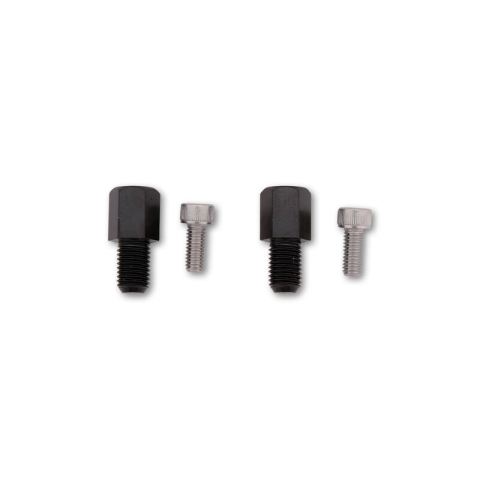 HIGHSIDER Smart Rögzítő Készlet Kormánytükörhöz A HIGHSIDER smart rögzítő készlet kormánytükrökhöz, M6x1 mm-es jobbmenetes furattal, M10x1,25 mm-es jobbmenetes csavarral és 2 db M6x1 (14 mm) csavarral. Alkalmas a HIGHSIDER smart SUPERBIKE kormányvégi tükrök (301-077/-078) gyári tükörtartókra történő felszereléséhez. Például KTM, HUSQVARNA, HONDA, KAWASAKI és más márkákhoz. Méretek: Furat: M6 x 1.25 Menetes csavar: M10 x 1.25