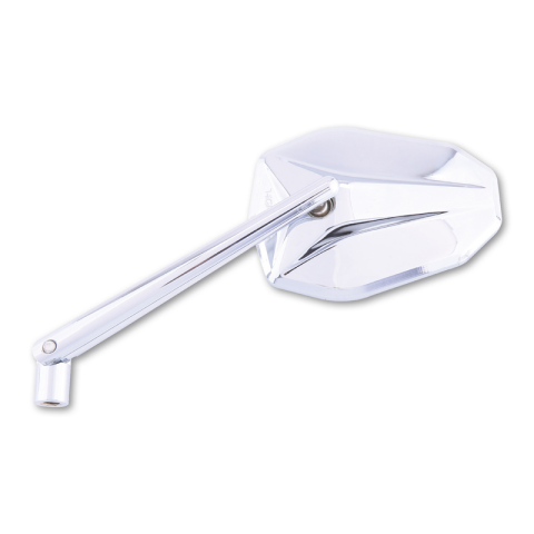 HIGHSIDER Victory tükör, állítható nyélElegáns univerzális tükör krómozott alumínium fejjel és állítható nyéllel. A fogantyún lévő második csukló használatának köszönhetően további beállítási lehetőségek állnak rendelkezésre a biztonságod érdekében.Tartalmaz egy extra adaptert M10 x 1,25 mm-es balos menettel Yamaha motorkerékpárokhoz. Használható bal és jobb oldalon is, E-jóváhagyott.A HIGHSIDER tükörsorozatot a jellegzetes design és az aerodinamik