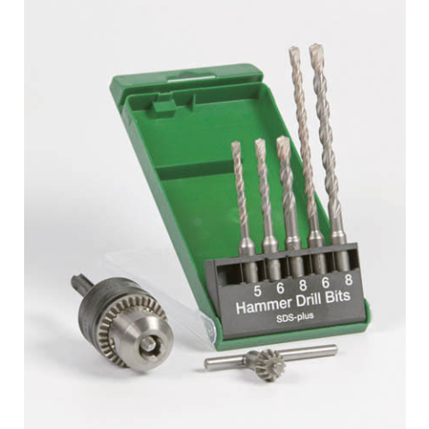 TermékjellemzőkMűszaki adatokLeírás6 darabos készlet: 13 mm-es tokmány SDS-plus adapterrel, fúrószárak: 5. 6 , 8 x 110 mm, 6, 8 x 160 mm Minimum rendelhető mennyiség1 dbMegnevezés2-élű SDS-Plus TCT fúrószár készletek Csomagolási egység6 db