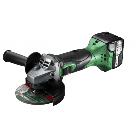 Professzionális 18V akkus sarokcsiszoló HiKOKI-tól (korábban Hitachi) – MultiVolt rendszerű, 115 mm-es tárcsával, 5 Ah-s HSC (High Capacity) akkuval és gyors töltővel. Nagy teljesítményű, kompakt és rezgéscsillapított modell napi kemény munkákhoz.