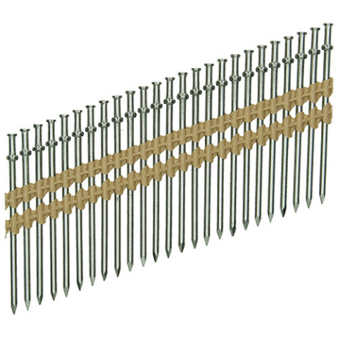 A szegszalagok műanyag alapúak, 21°-os teljesen kerek fejű, sima szárú, bevonat nélküli (fényes) szegeket tartalmaznakIdeális betonformákhoz, valamint gyors és egyszerű eltávolításra tervezett állványokhozA két fej erőfeszítés nélküli levételt tesz le
