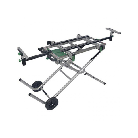 Strapabíró munkaállomás gérvágó- és aprítófűrészgépekhez, húzható funkcióval a mobil használathoz, akár beszerelt fűrésszel együttNagy méretű gumiabroncsok a kényelmes szállításhoz még az építkezések egyenetlen terepén isDupla alátámasztású asztalszél