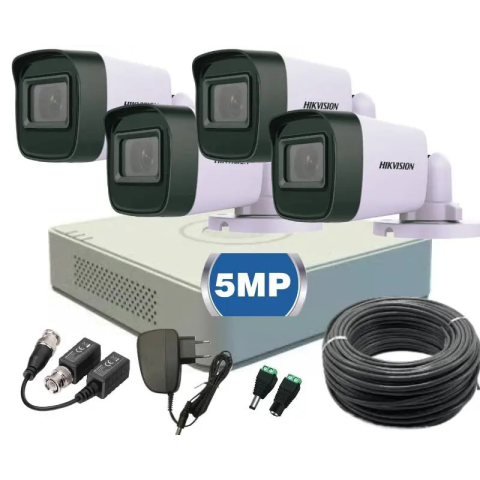 4 kamerás Hikvision biztonsági kamera rendszer TurboHD 5MP 2K felbontás 30 m éjszakai látótávolsággal Hikvision 5 Megapixeles biztonsági kamera rendszer szettünk megoldást kínál családi házak, irodák, lakások és telephelyek hatékony kültéri és beltéri meg