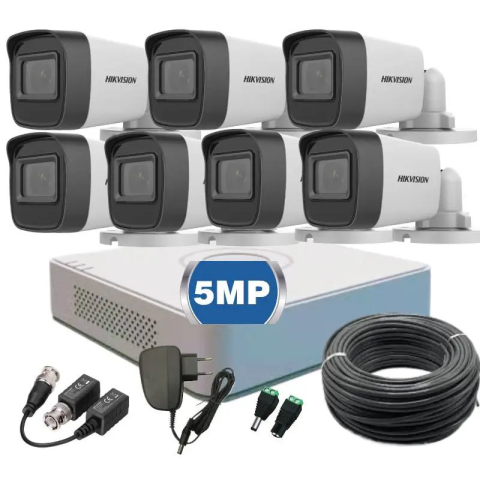 Hikvision 5 megapixeles 7 kamerás kamerarendszer 30 méter látótávolsággal (HIK-7BULLET-5MP-30M)