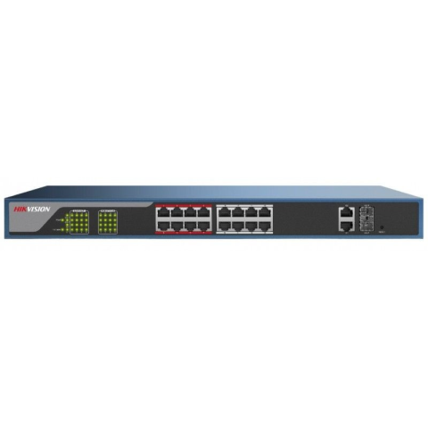 18xLAN port, LAN 10/100 Mbps, PoE port 16, PoE osztály PoE+, PoE távolság 300m, Menedzselhető, Vizuális topológia, Teljesítmény 230W, Uplink 1 Gbps
