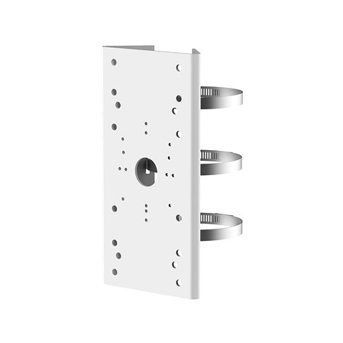 Kamera állvány Hikvision - használható kültéren, elhelyezhető oszlopra, tartó rögzítése szorítópántokkal, kamera rögzítése a tartóhoz menettel, anyaga fém, fehér kivitel, mérete 25 × 12,7 × 4,6 cm (Ma×Sz×Mé)