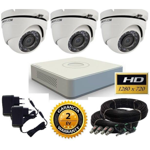 3 dome kamerás Hikvision TurboHD-TVI biztonsági kamera rendszer 2MP Full HD színes éjszakai képpel és hangrögzítéssel A Hikvision TurboHD-TVI dome kamera rendszer szettje ideális megoldást kínál kültéri és beltéri biztonsági megfigyeléshez családi házak,