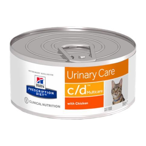 Hill's Prescription Diet Feline c/d minced chicken konzerv macska részére156g A Prescription Diet™ Feline c/d™ Multicare csirkés eledel hatékonyan segíti az egészséges húgyutak megőrzését, és csökkenti a húgykövek kiújulásának esélyét. A Hill táplálkozási
