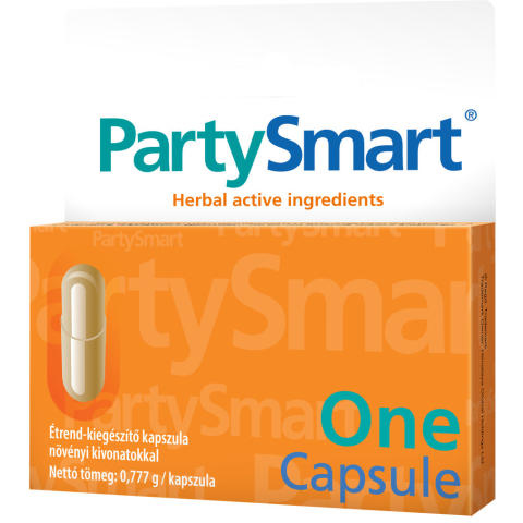 PartySmart ® Gyógynövény-kivonatokat tartalmazó étrend-kiegészítő kapszula 1 db Aktív hatóanyag tartalom 1 kapszulában (ajánlott napi bevitel): Andrographis paniculata / Andrográfisz 47 mg Cichorium intybus / Cikória