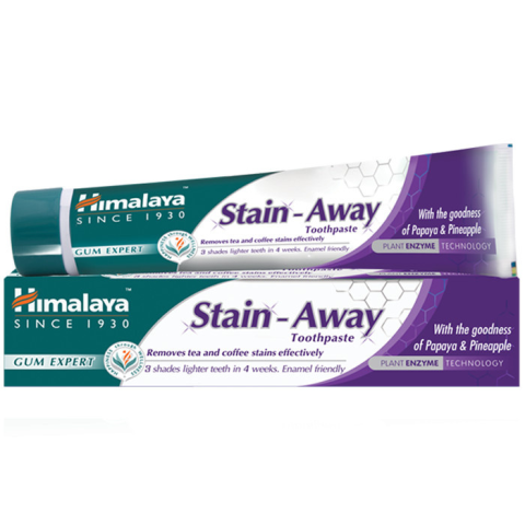 Stain Away folteltávolító és fogfehérítő gyógynövényes fogkrém 75ml Akár 3 árnyalattal fehérebb fogak 4 hét alatt. Egy egyedi gyógynövényes formula, mely növényi enzimtechnológiával gyengéden távolítja el a tea, kávé és cigaretta okozta foltokat a fogakró