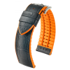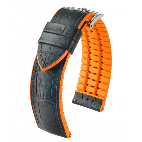 A Hirsch Andy Prémium hibrid óraszíj pimasz és magabiztos. Klasszikus aligátor mintázat, alatta a színes Hirsch Prémium kaucsuk helyezkedik el. A Hirsch Performance kollekció része ez az óraszíj, mely párnázásának és kialakításának köszönhetően szinte ész