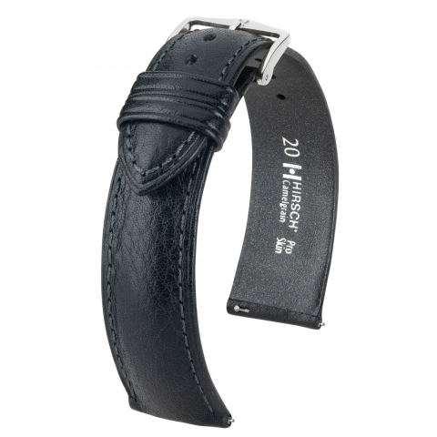 Az óraszíjak érzékeny bőrű szerelmesei szeretik a HIRSCH Essential termékcsalád klasszikus bőrkímélő termékét. A Hirsch Camelgrain robusztus borjúbőrből készül, amely a rostmélységig dobfestve van és HIRSCH Pro Skin védőbevonattal van ellátva. A Pro Skin