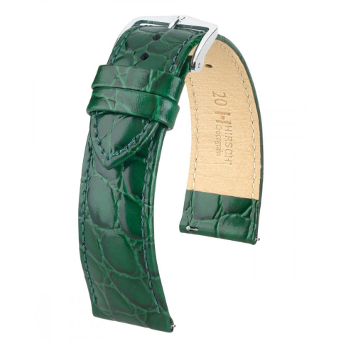 1 kép Hirsch Crocograin borjúbőr óraszíj, zöld, 16/14M