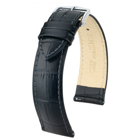 A legfinomabb olasz borjúbőr természetes hatású aligátor mintázattal és dombornyomott, kissé matt felülettel. Harmónikusan kialakított párnázás, finom tónusú visszavart varrás jellemzi ezt az örökzöld Hirch óraszíjat. Mindehez gyönyörű Hirsch Traditional