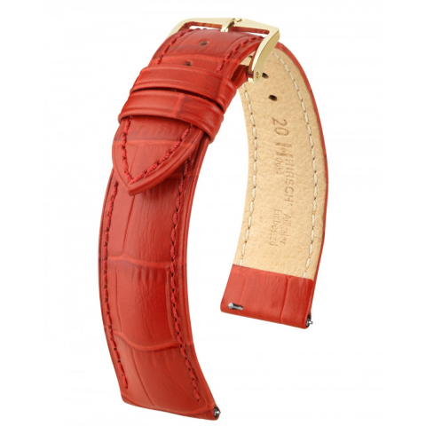 1 kép Hirsch Duke borjúbőr óraszíj, piros, 16/14M