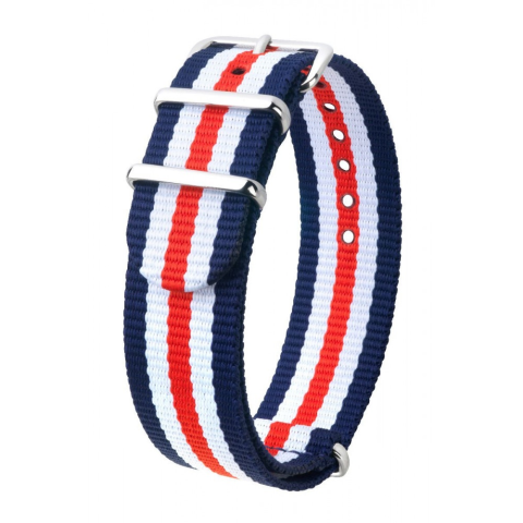 1 kép Hirsch Hirsch Rush NATO óraszíj, kék/fehér/piros, 18 mm